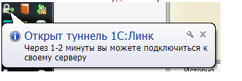 - Запускается Агент 1С:Линк, который обеспечивает безопасный канал доступа к вашим приложениям 1С через Интернет.