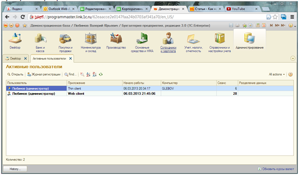 10. Теперь нам осталось зайти по адресу: https://programmaster.link.1c.ru/ выбрать нужную базу и работаем: