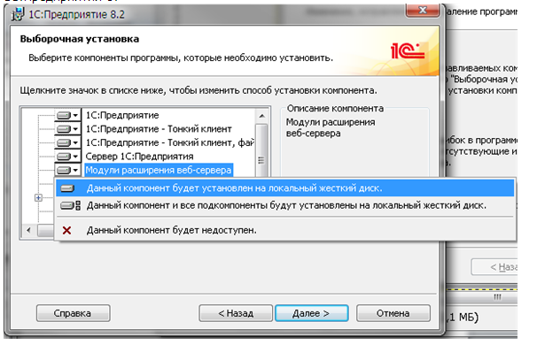 3. Теперь нам нужно настроить нашу базу для работы через интернет, для этого скачиваем специальную обработку, которую открываем в режиме 1С:Предприятия той базы к которой хотим организовать доступ. Перез открытием обработки нужно убедиться, что установлен модуль расширения WEB-сервера из комплекта 1С:Предприятия 8:
