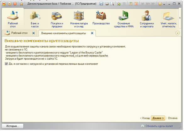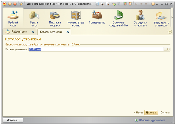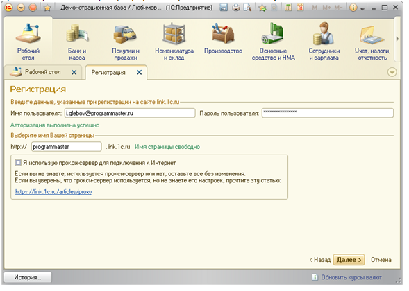 - Производиться регистрация компьютера в сервисе 1С:Линк;