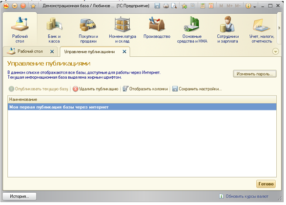 8. После окончания процедуры установки, откроется форма со списком всех публикаций, в нашем случае она одна: