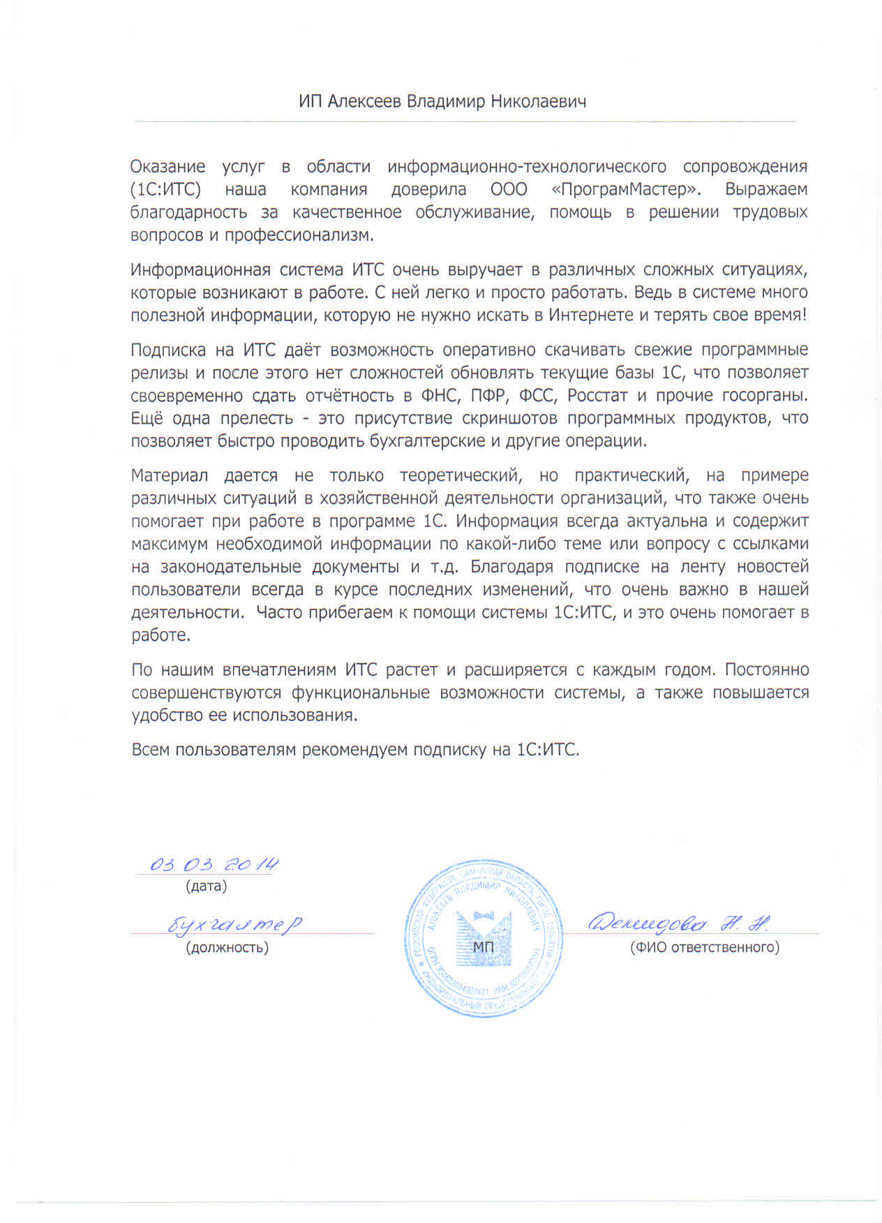 ИП «Алексеев Владимир Николаевич» (1С:ИТС) - 2014г.