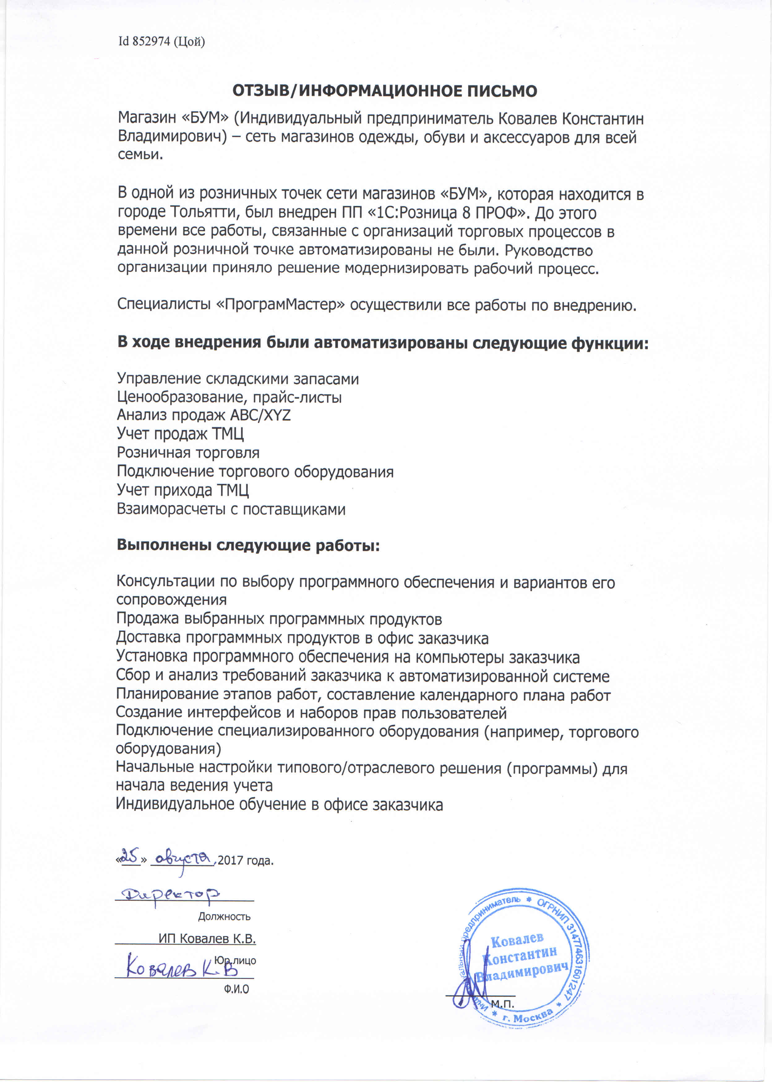 Магазин «БУМ» (Индивидуальный предприниматель Ковалев Константин Владимирович) – сеть магазинов одежды, обуви и аксессуаров для всей семьи.