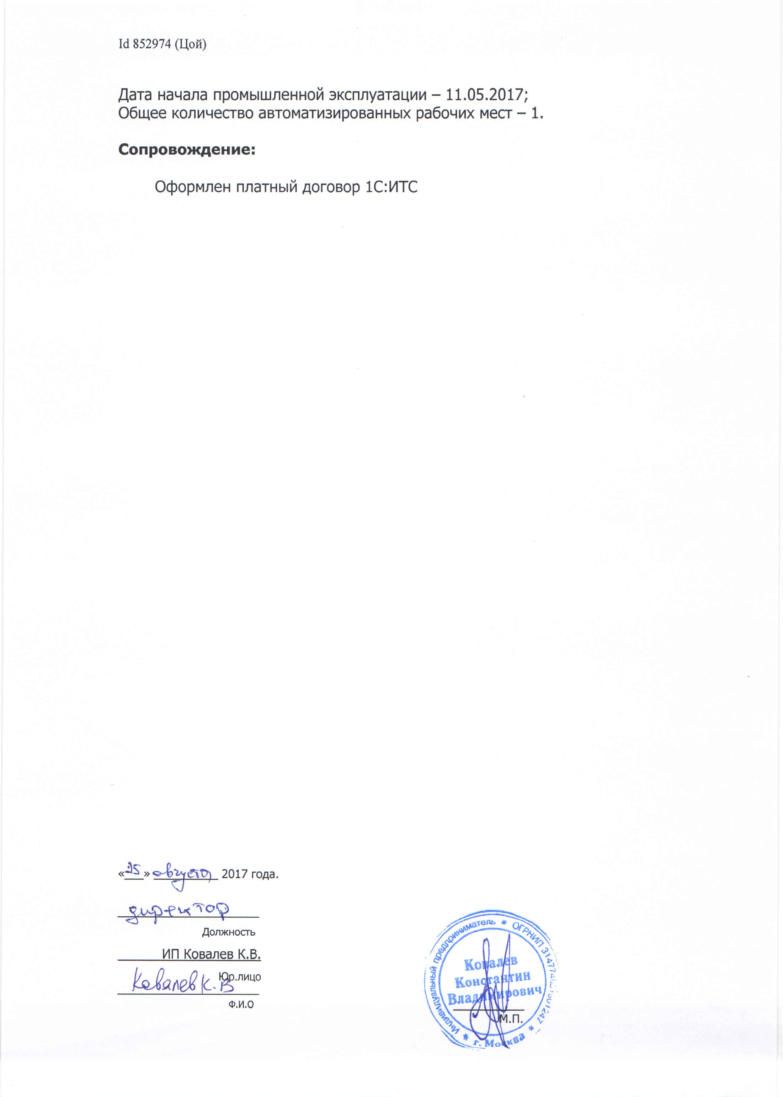 Дата начала промышленной эксплуатации – 11.05.2017;