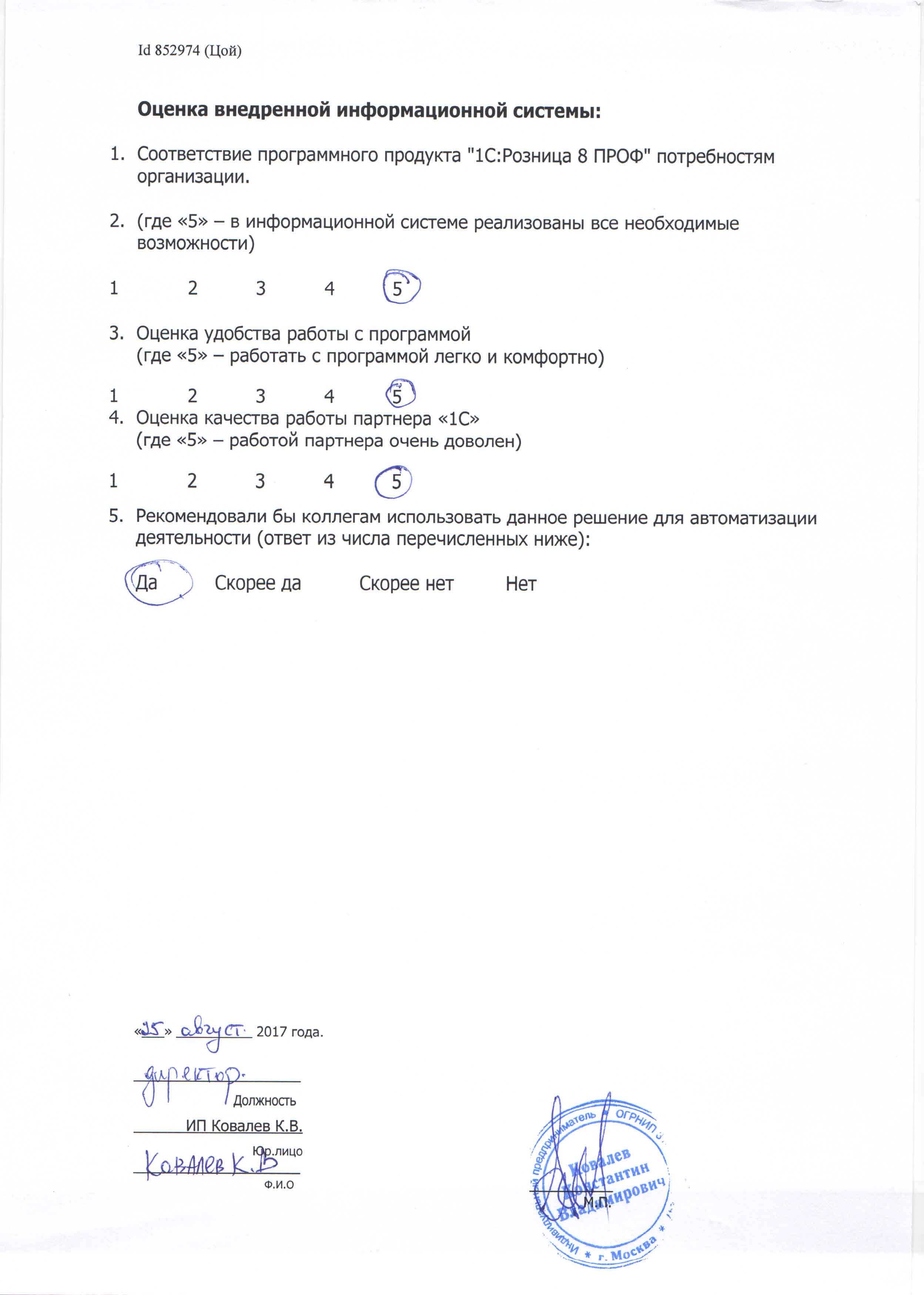 Магазин «БУМ» (1С:Розница) - 2017г.