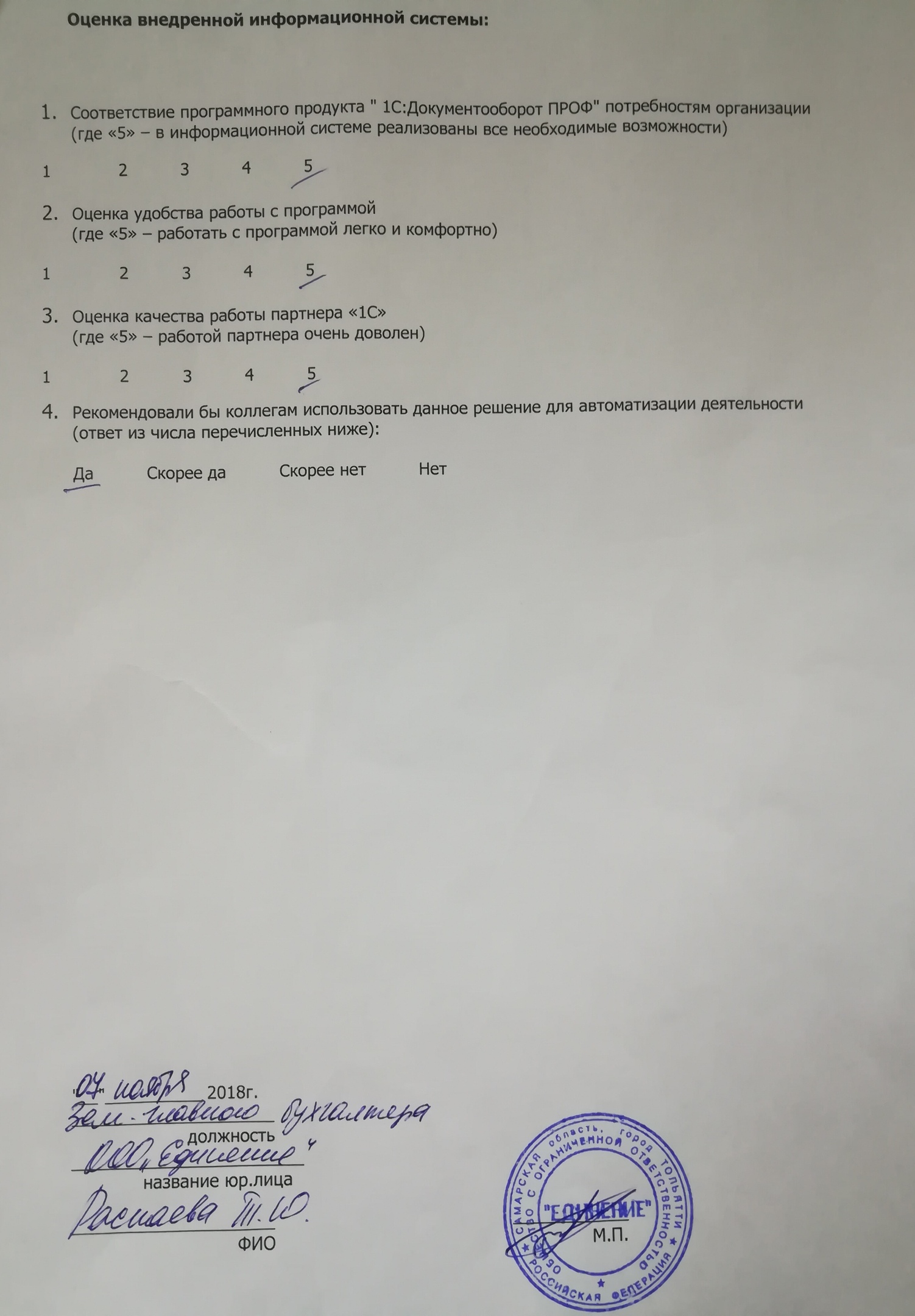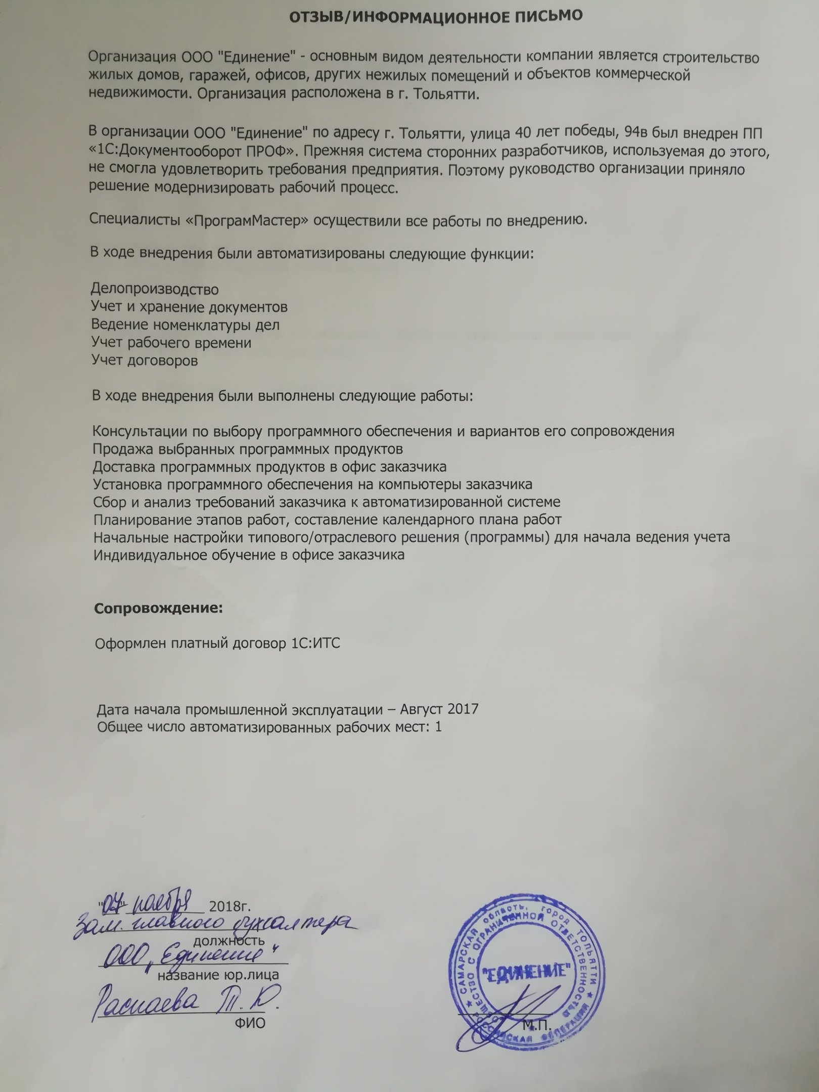ООО «Единение» (1С:Документооборот) - 2018г.