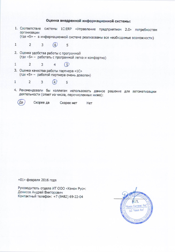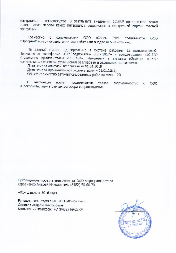 ООО «Хэнон Рус» (1С:ERP) - 2016г.