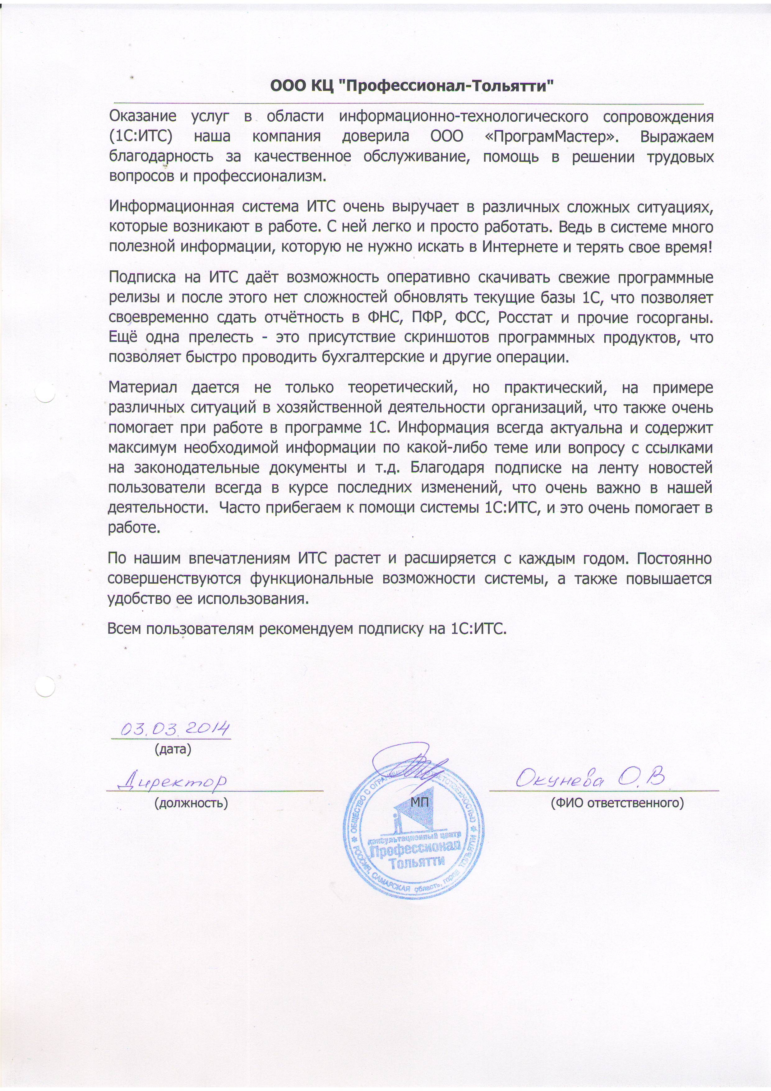 ООО КЦ «Профессионал-Тольятти» (1С:ИТС) - 2014г.
