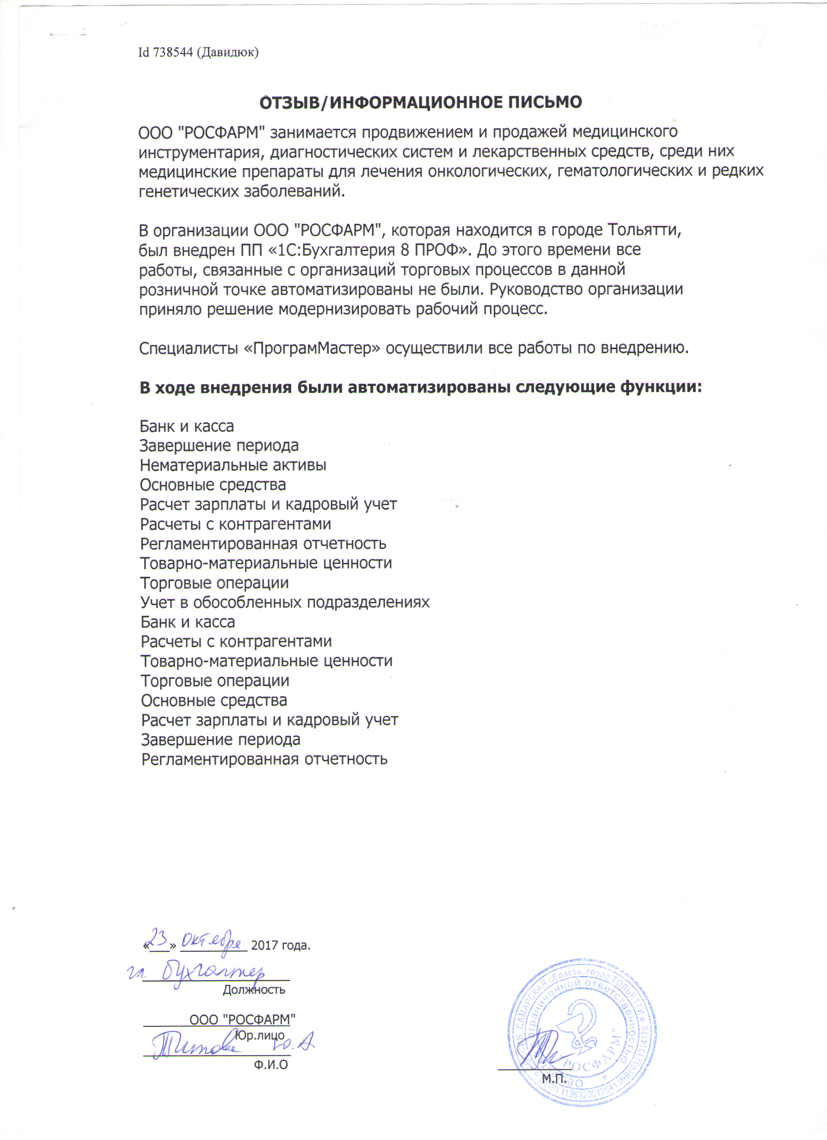 ООО «РОСФАРМ» (1С:Бухгалтерия) - 2017г.