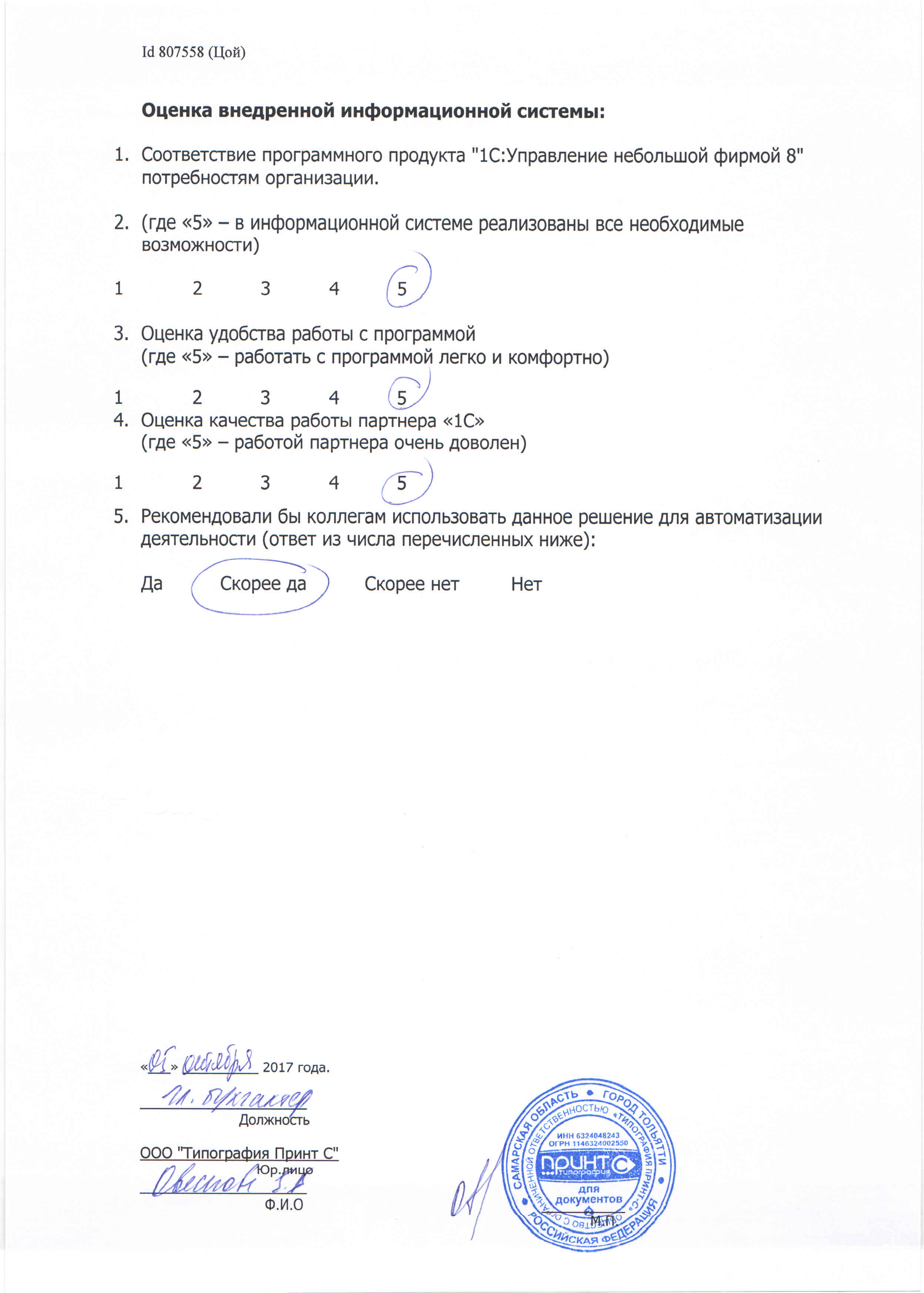ООО «Типография Принт С» (1С:УНФ) - 2017г.