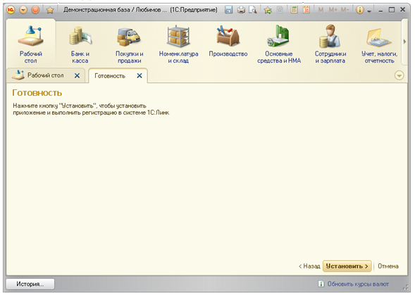 - Производиться регистрация компьютера в сервисе 1С:Линк;