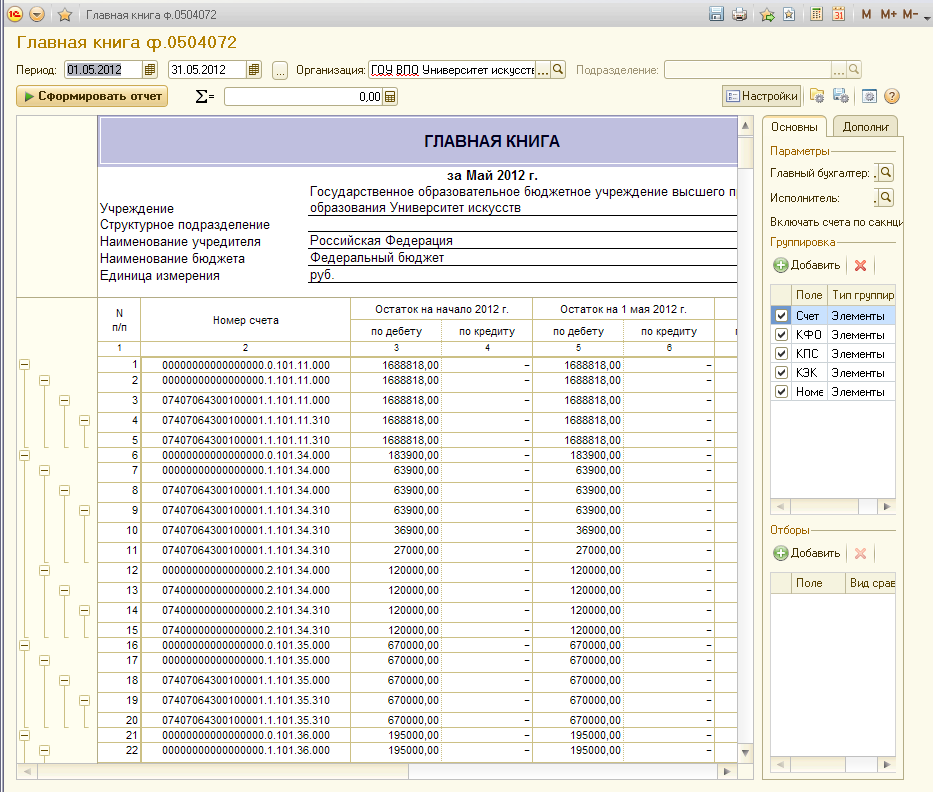 Приложение позволяет решать оперативные задачи бухгалтерского учета, а также организовать управленческий учет в соответствии с потребностями учреждения и требованиями учредителя.