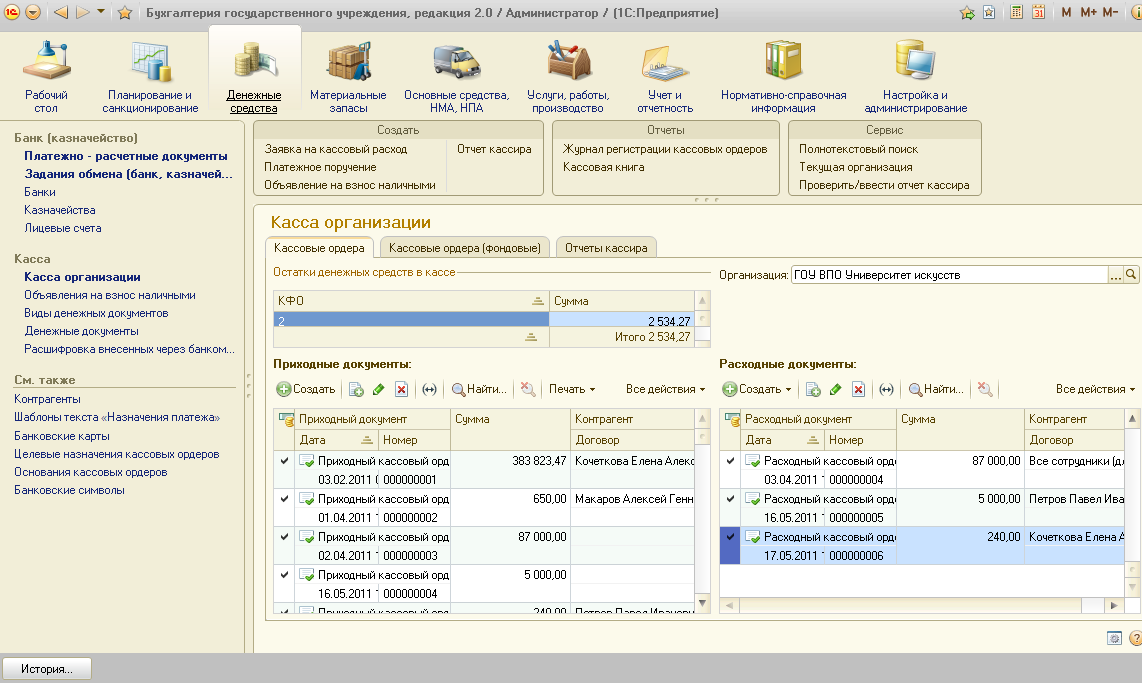 - Учет наличия и движения денежных документов и наличных денежных средств в кассе, в том числе, в иностранной валюте;