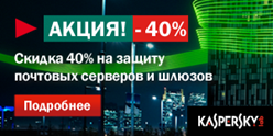 Если вы являетесь пользователем одного из решений или хотите приобрести Kaspersky Endpoint Security для бизнеса Стандартный или Kaspersky Endpoint Security для бизнеса Расширенный, вы получаете скидку 40% на продукты для защиты почтовых серверов, интернет-шлюзов, серверов совместной работы.