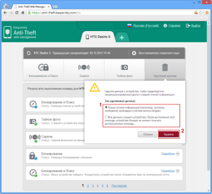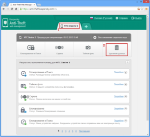- Теперь вернемся к ситуации, когда телефон уже потерян или украден. Удалим личные данные с помощью веб-портала: