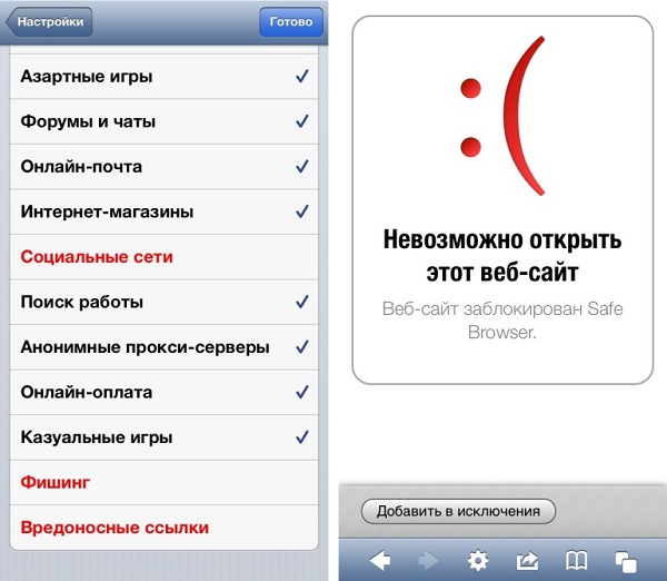 Безопасный браузер для iOS блокирует ссылки на фишинговые сайты и другие веб-ресурсы, которые могут представлять опасность для владельца мобильных устройств Apple. Как и все пользователи Интернета, владельцы iPhone и iPad могут стать жертвами фишинга — кражи пароля к социальной сети, учетной записи Apple ID и других персональных данных с помощью поддельных сайтов или рассылки писем от имени известных компаний.