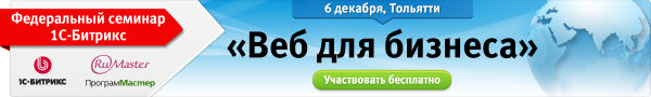 Федеральный Семинар “1С-Битрикс”, посвященный созданию сайтов, интернет-магазинов и корпоративных порталов, пройдет 6 декабря 2012 года с 11:00 до 17:00 в развлекательно-оздоровительном комплексе «Атлантида», Тольятти, Новый проезд, 8.