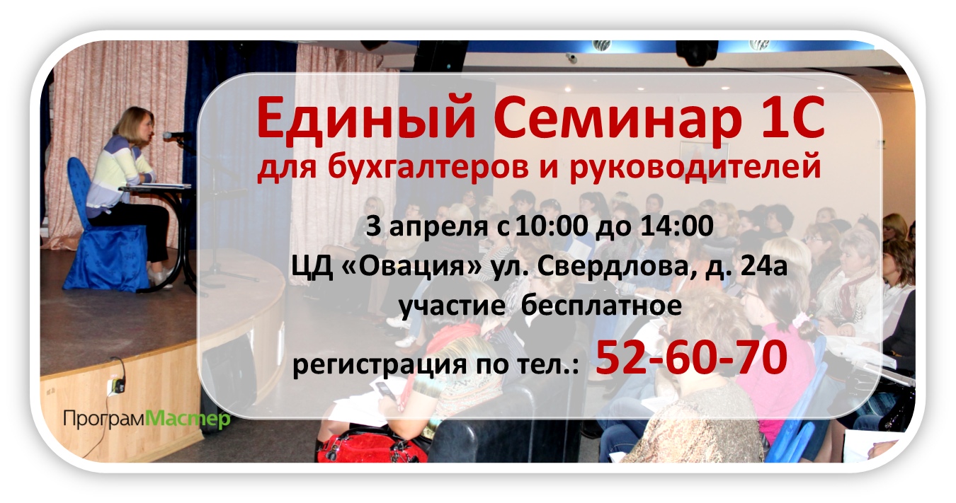Единый семинар проводится 3 апреля 2013 года c 10:00 до 14:00 в Тольяттинском Центре Досуга «Овация», Тольятти, ул. Свердлова, д. 24а.