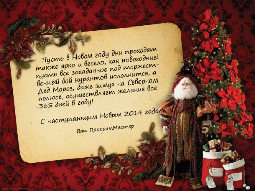 В наступающем 2014 году хотим пожелать добра, радости, движения вперед, и чтобы жизнь была полной приключений, радостных событий и невероятных эмоций!