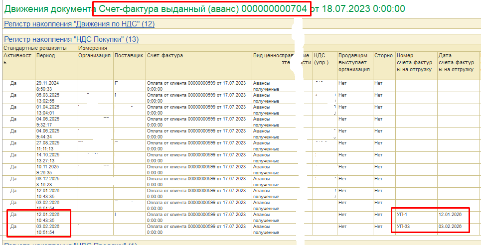 Ошибка: в старом документе 2023 года возникают движения от января и февраля 2026 года.