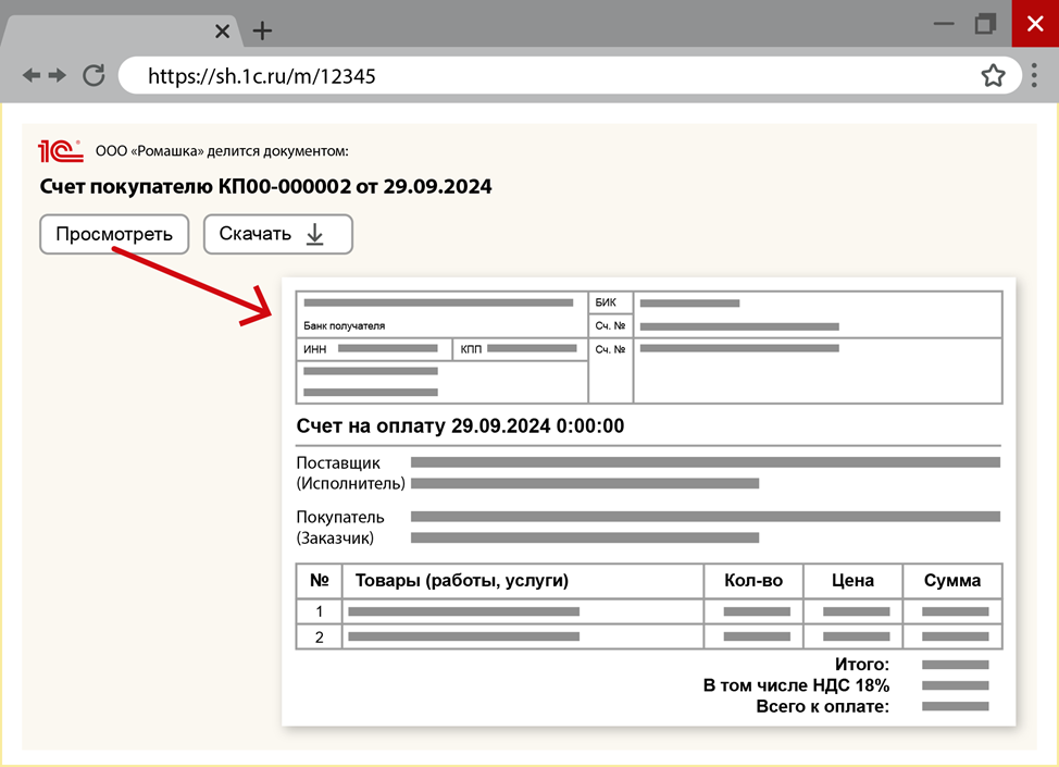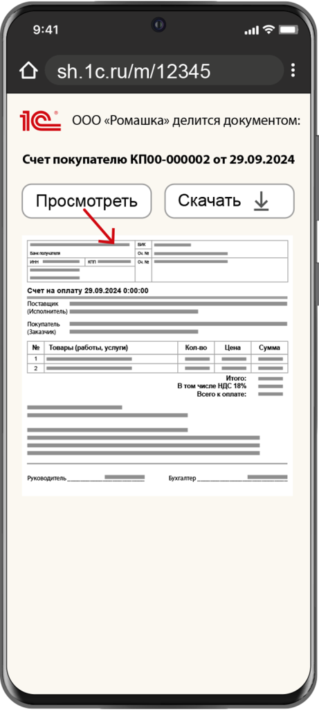 - Контрагент может ознакомиться с вашим документом, даже если у него нет программы 1С или он сейчас без доступа к программе.